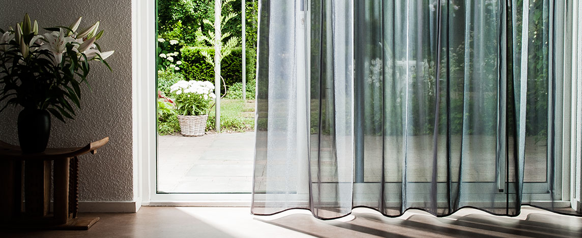 De verschillende weefdichtheden in ons gamma laten u toe de juiste balans tussen afscherming en lichtdoorlatendheid te krijgen. Ook zijn er weefsels met figuren of geborduurde zomen verkrijgbaar, waardoor u een extra decoratietoets kan leggen.